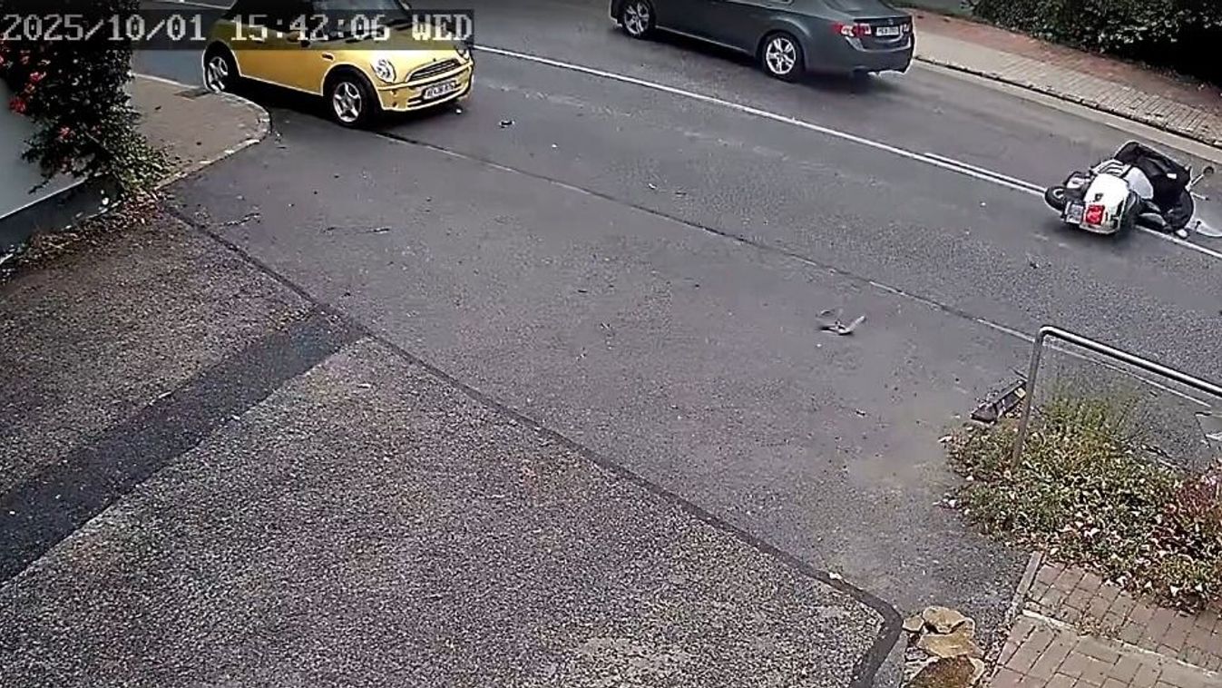 Egy térfigyelő kamera rögzítette azt a balesetet, amely a Budaörsi úton történt október 1-jén. A robogós előzés közben megcsúszott a nedves aszfalton és elesett, így pont a szemből érkező Mini előtt terült el. A kisautó vezetőjének volt lélekjelenléte, mert hirtelen elrántotta a kormányt, így csak a kétkerekűn ment át, a vezetőjét szerencsére elkerülte. Az ütközés után a robogó még métereket csúszott az aszfalton.