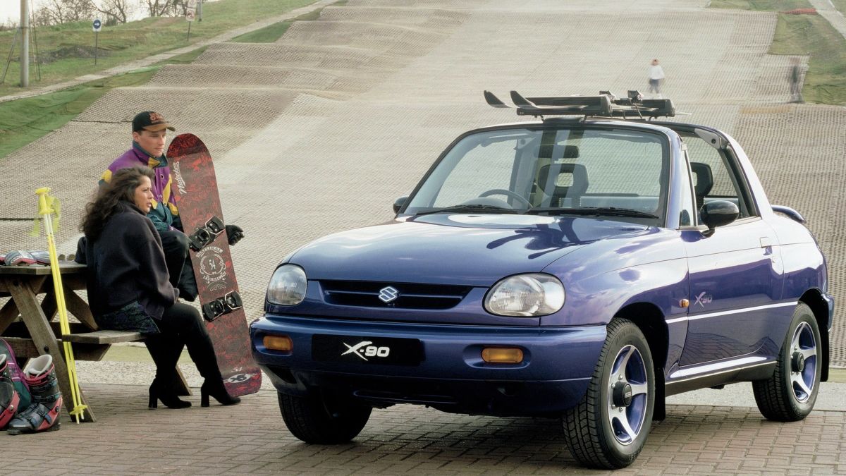 Dübörögtek a szerelőszalagok az esztergomi gyárban, a magyar vásárlók tömegével cserélték le szocialista járgányaikat a megfizethető és takarékos Swiftre: harminc évvel ezelőtt valóban a „mi autónknak” számított a Suzuki, és Nyugat-Európában is egész jól ment a márkának, mely még a Golf-kategóriában is szerencsét próbált az új Balenóval. Ugyanakkor pontosan tudták a japán mérnökök, hogy az exportpiacok közül Amerikában tud igazán jó pénzt keresni, megpróbálták hát felmérni, mivel lehetne megszólítani a lila széldzsekis, walkmant hallgató fiatalokat – és egy ’93-as tanulmányautó nyomdokain megszületett a felnagyított görkorcsolya, a Suzuki X-90.