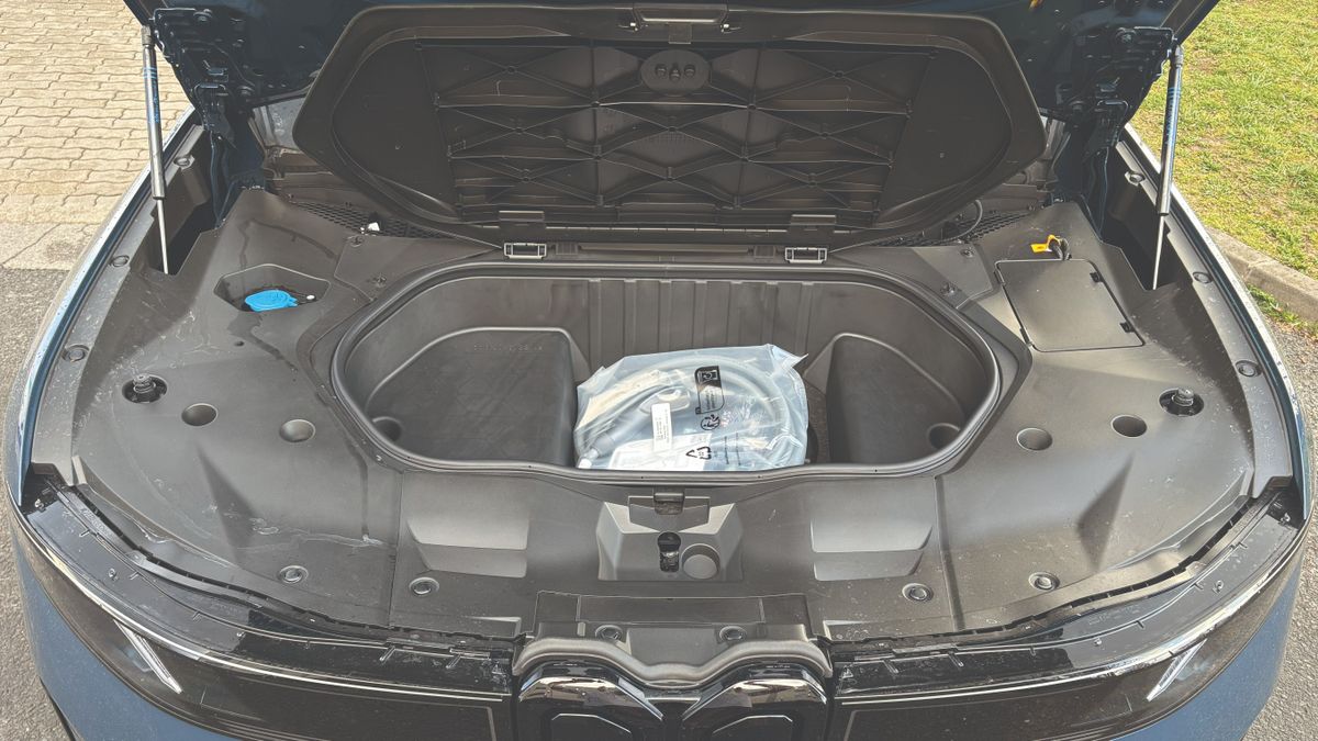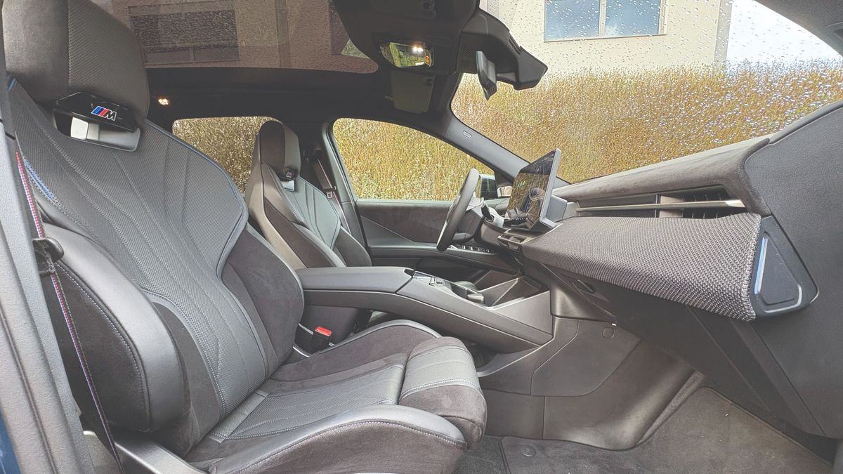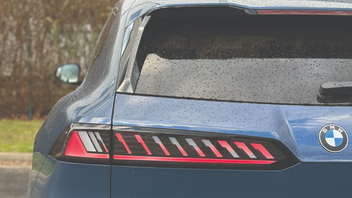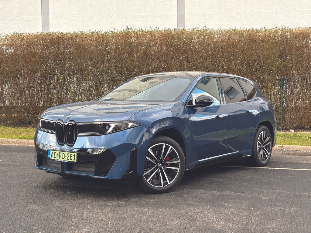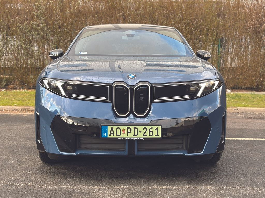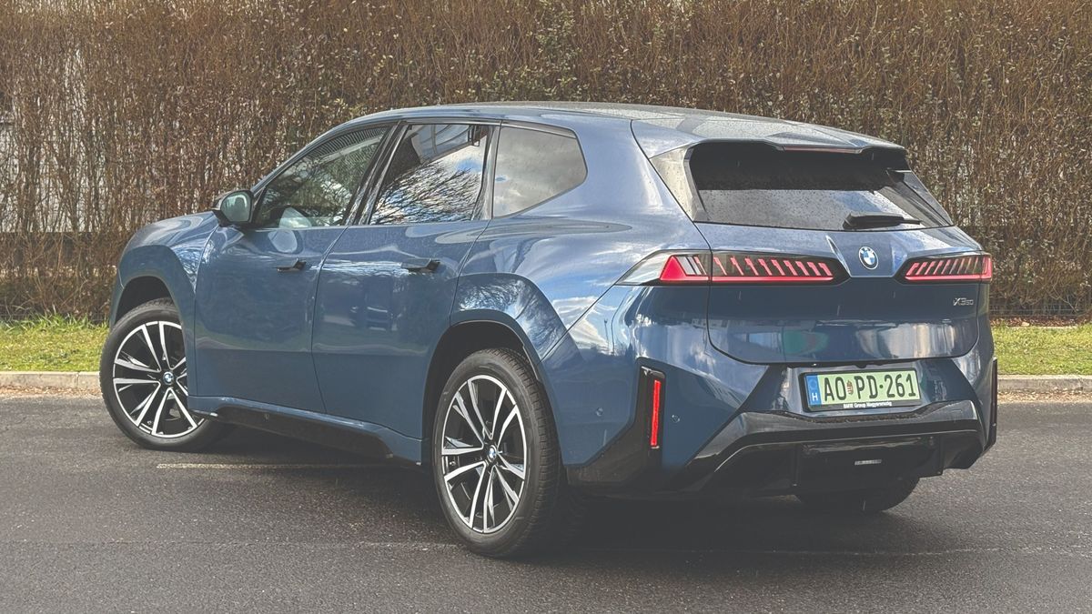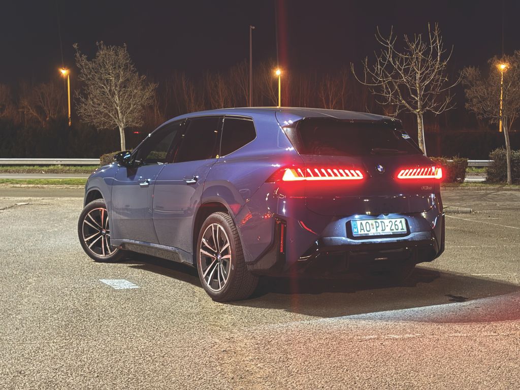 Élőben messze nem olyan ügyetlen a forma, mint elsőre gondoltam, nehezen tudtam levenni róla a szemem, és ezzel az utca embere is így volt. Rengeteg apró részletét meg lehet szeretni, mostanra pedig már kifejezetten teszik. Alig két centi híján 4,8 méteres, vagyis középkategóriás SUV létére jó nagy autó. Szerencsére itt nincsenek eltúlzott, földig érő BMW-vesék, de nagyon karakteres az orra, különösen nyitás után, ahogy az Iconic Glow nevű kontúrok világítása bekapcsol. Külön izgalmas az M Sport Pro csomaghoz járó üléseken nyakmagasságban található kis M logó, ami szintén világít, de a hátsó lámpák veséket imitáló formai játéka is feltűnő. A mára már unalomig ismert LED-csíktól eltekintettek a német mérnökök, üdítő kivétel a hagyományos lámpatestek újragondolása.