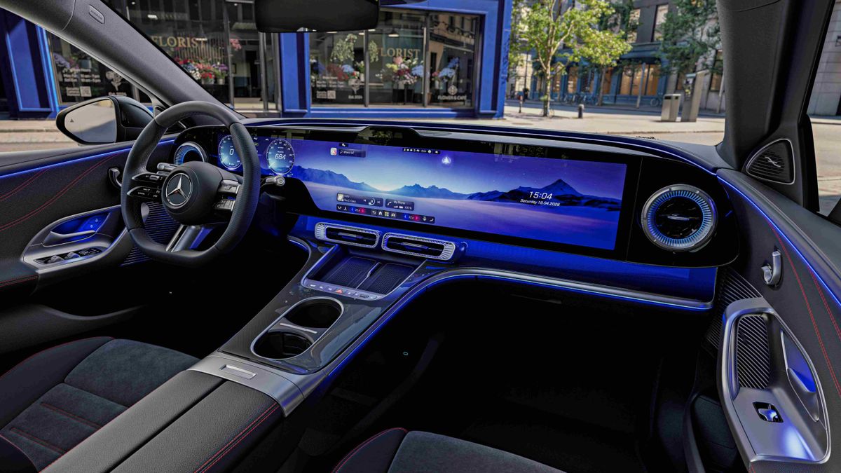 Nagy hangsúlyt helyeztek az új generációs MB.OS infotainment és a vezetéssegítő rendszerek kifinomult működésére, illetve a komplex díszkivilágítással messzemenően egyedivé tehető belső hangulatra, ráadásul a Burmester 4D hifin lejátszott zenére pulzáló fényjáték is elérhető. Persze mindezeknél feltűnőbb a műszerfal szinte „faltól falig” tartó, 39,1 colos átmérőjű Hyperscreen óriáskijelzője, ami természetesen együtt járt a fizikai gombok számának további csökkenésével, de szerencsére a legfontosabb funkciókhoz azért meghagytak párat.