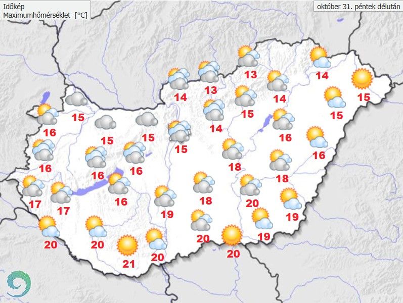 Halottak napján a ködös reggelt követően nyugat felől fokozatosan megnövekszik a felhőzet, de csapadék csak az esti órákban érkezhet. A maximumok 15 és 21 fok között alakulnak.