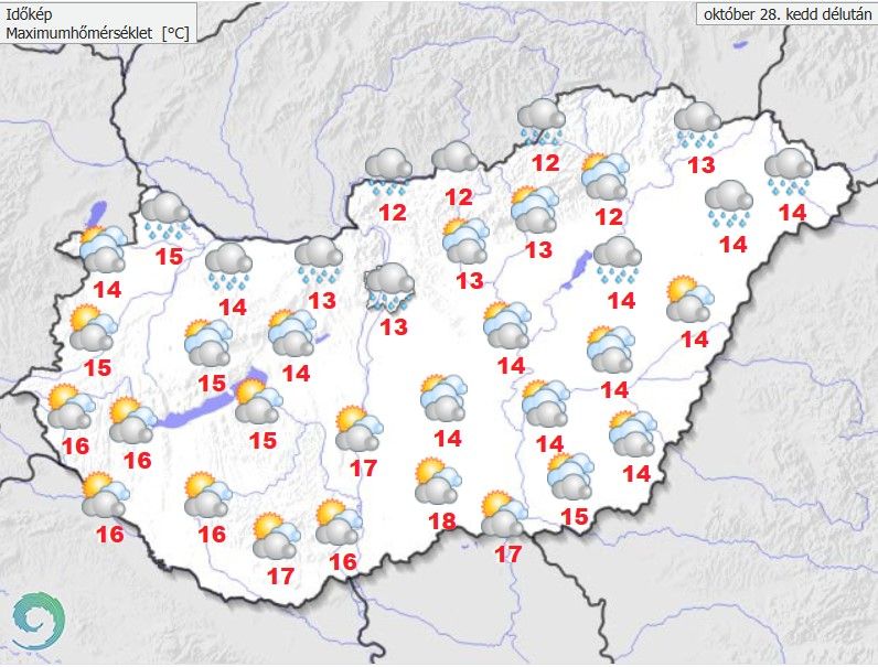 A gyakran változó felhőzet mellett délutánig többórás napsütésre számíthatunk. Ekkor északnyugat felől összefüggő, vastagabb felhőtakaró érkezik, amely legkevésbé az ország délnyugati részét érinti, ebből főként az északi tájakon alakulhat ki többnyire kisebb eső, zápor – derül ki a HungaroMet előrejelzéséből.