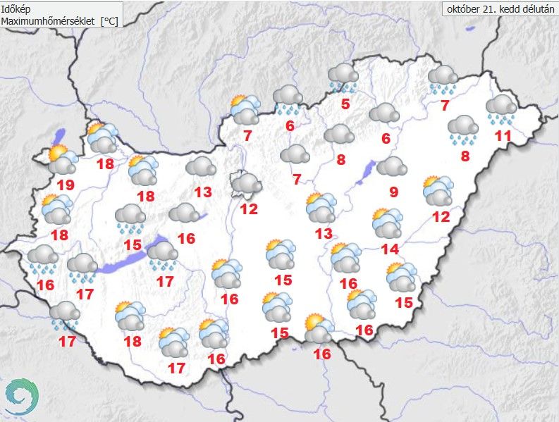 A legmagasabb nappali hőmérséklet az Északi-középhegység tágabb környezetében 5 és 13 fok, máshol 14 és 20 fok között várható. Késő este 5, 13 fok valószínű.