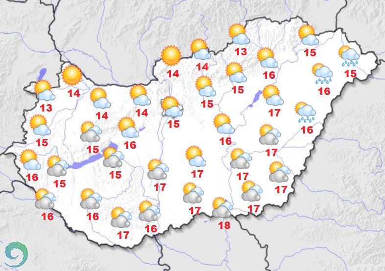 Szerdán többnyire borongós időre van kilátás, de csak helyenként lehet gyenge csapadék. A nappali hőmérséklet 15–16 fok körül tetőzik.