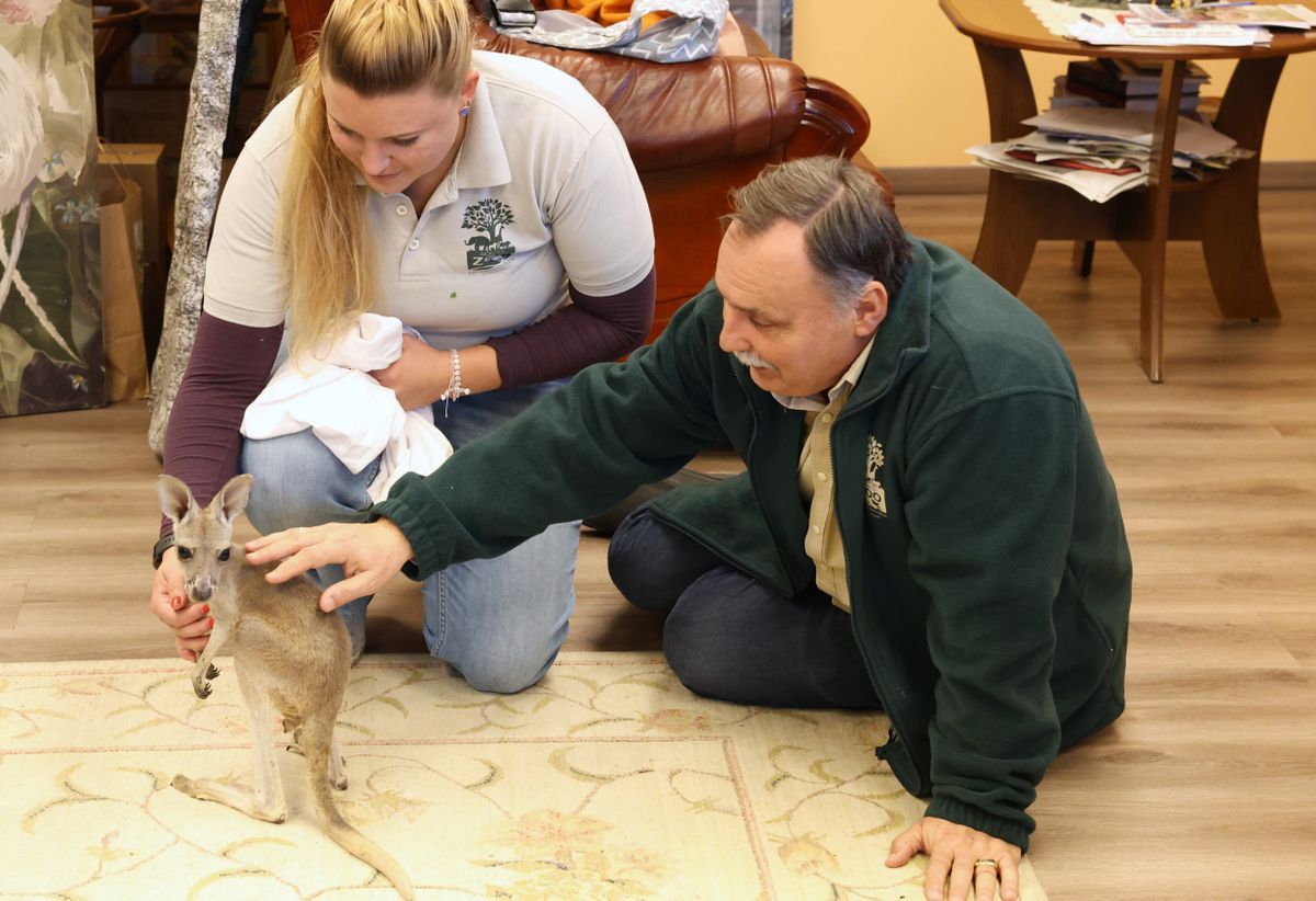 Viszonylag ritka, hogy egy igazgatói irodában vörös óriáskenguru ugrándozik – Gajdos Lászlónak, a Nyíregyházi Állatpark igazgatójának szerdán ebben a kivételes örömben lehetett része – tudósított a rendkívüli látogatásról a Szabolcs-Szatmár-Bereg Vármegyei hírportál, amely részese volt a különleges eseménynek.