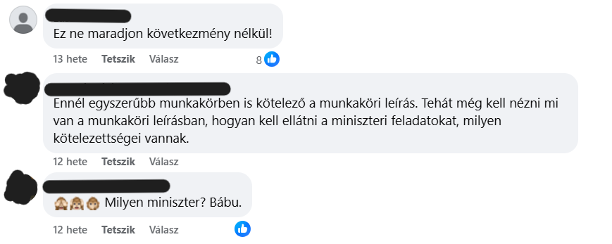Egy másik hozzászóló pedig vádlottak padját készíttetne Varga Judittal. Ennél is rosszabb volt a helyzet a Tisza Párt szimpatizánsainak egyik csoportjában. A bejegyzés alatt, amelyben egy Varga Judit esetleges visszatéréséről szóló cikket osztottak meg, válogatott trágárságokkal illették a visszavonult politikust.