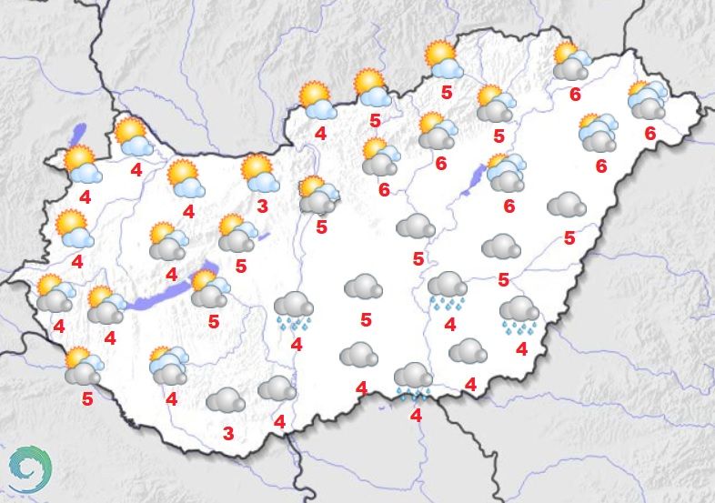 Hétfőn többnyire erősen felhős, párás, helyenként egész nap borult időre van kilátás. A hőmérséklet 3 és 9 fok között alakul.