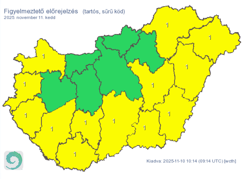 A köd és a rétegfelhőzet egyre nagyobb területre terjeszkedik kedd estétől, illetve újraképződik – írja előrejelzésében a HungaroMet.
