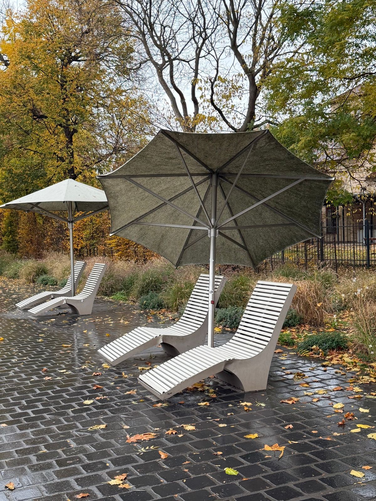 Vandál módon elhajlították már évekkel ezelőtt az ágyakat, ma reggelre valaki kidöntötte az egyik napernyőt is. Egy másik már hónapokkal ezelőtt be is szakadt, de az összes többi is mocskos, elhasznált.