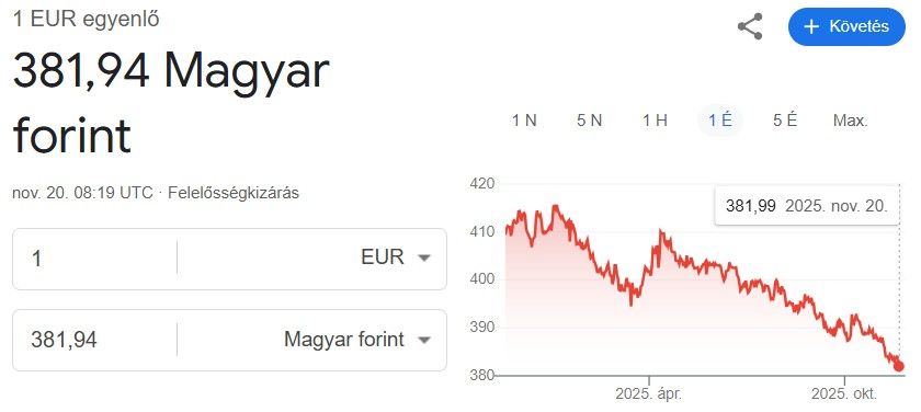 2022-ben, akkori árfolyamon, 900 euró volt a nettó magyar átlagbér. Most, a jelenlegi árfolyamon, 1250 euró. Ez három év alatt euróban számolva 39 százalékos magyar béremelkedés.