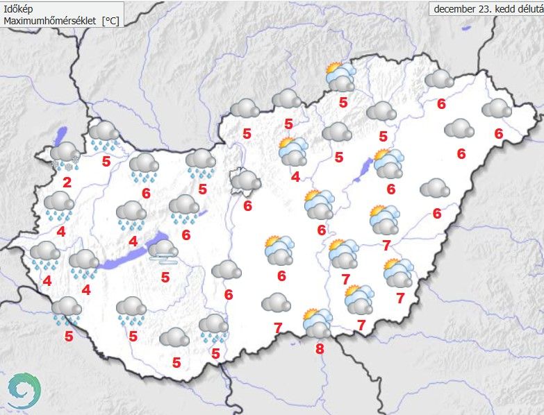 Karácsony első napján az ország délnyugati kétharmadán marad a borongós égbolt.