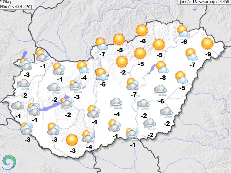 Vasárnap estig az ország időjárását jelentős területi különbségek jellemzik: míg északkeleten és északon többfelé derült, napos idő várható, addig máshol tartósan borult, párás maradhat a táj, helyenként gyenge hószállingózással, ónos szitálással – tájékoztatott a HungaroMet Nonprofit Zrt.