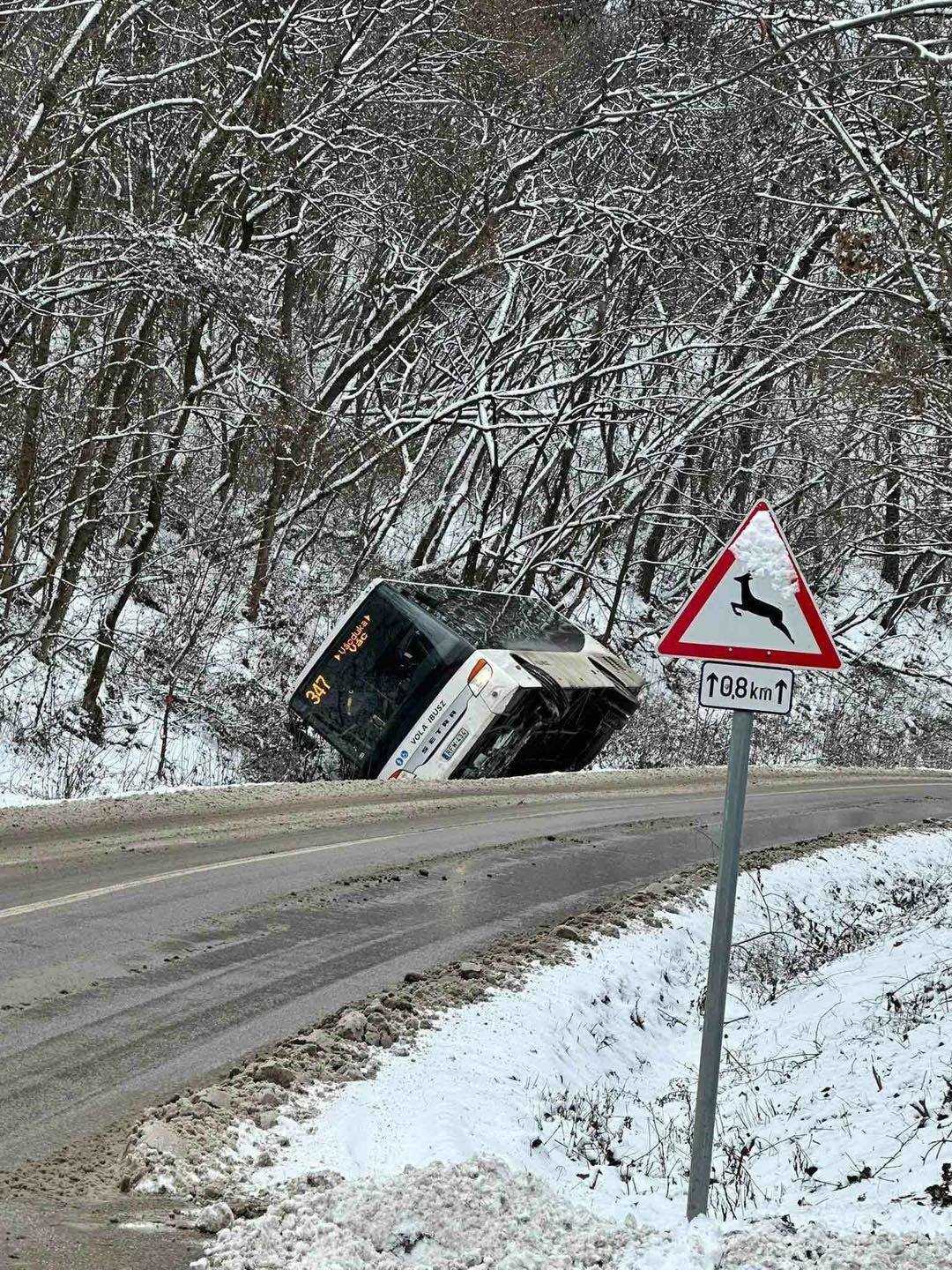 A csúszós útszakaszon a jármű kis sebességgel is irányíthatatlanná vált, de szerencsére az úton maradt és más arra közlekedő sem sérült meg. A buszon ülő utasokat ezt követően egy mentesítő járat szállította el.