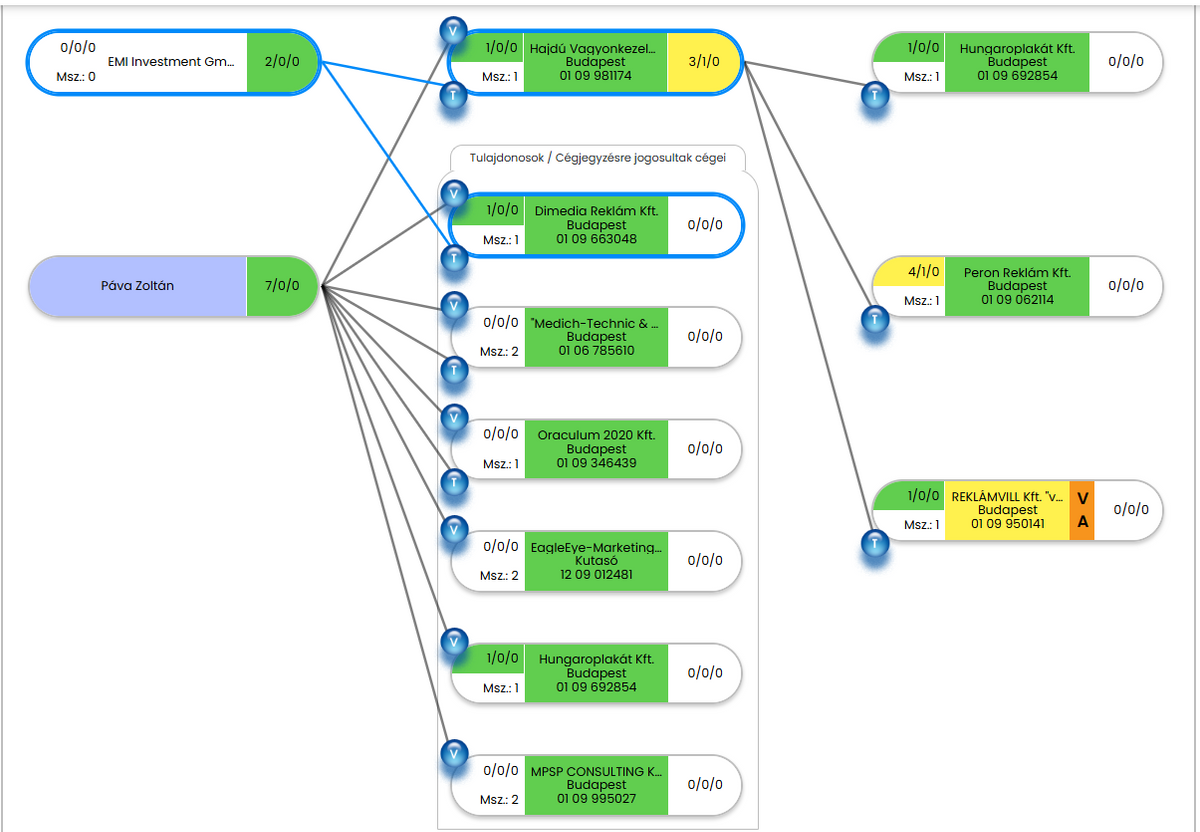 A kapocsolatot a bajorországi Kemptenben bejegyzett tulajdonos, az EMI Invest GmbH jelenti, melynek hivatalos képviselője a hazai közéletben ismeretlen Szabóné Kalmár Szilvia. Az EMI Invest(ment) GmbH kissé eltérő (talán szándékosan elírt) névvel, de ugyanazzal a németországi címmel ugyanis szintén megjelenik tagként a Hajdú Vagyonkezelőben, amely közvetlenül kötődik a cégjegyzésre jogosult ifj. Páva Zoltánhoz, a Páva tulajdonában álló Oraculum 2020 Kft.-hez.