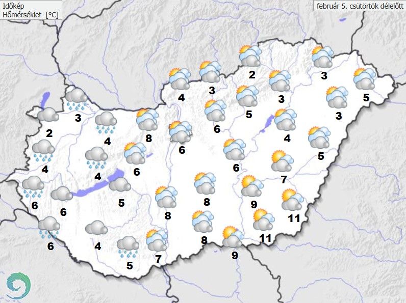 Napközben elsősorban a Dunától keletre akár hosszabb időre is elvékonyodhat, felszakadozhat a felhőzet, ezzel szemben a nyugati, délnyugati harmadban többfelé tartósan borult időre van kilátás – derül ki a HungaroMet előrejelzéséből.