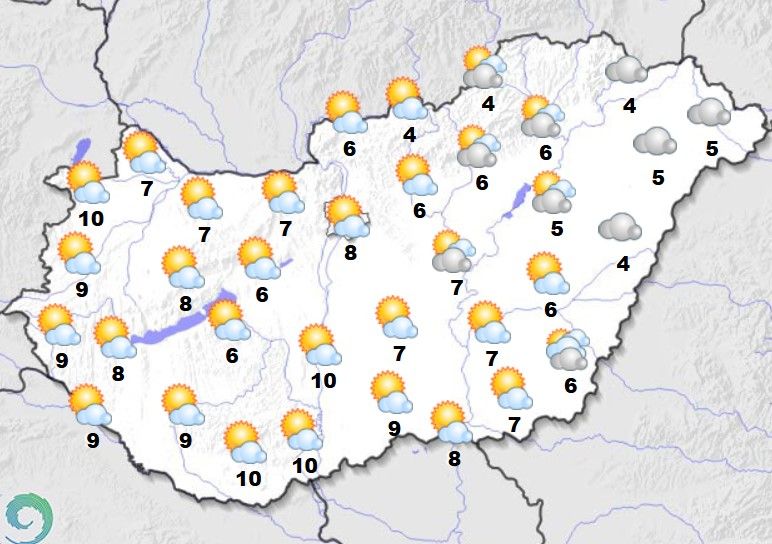 de a tartósabban felhős északkeleti tájakon ennél több fokkal hűvösebb marad az idő. Késő estére mínusz egy és plusz öt fok közé hűl le a levegő.