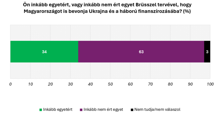 A legfrissebb felmérésükben is több aktuális politikai kérdés előkerült. Egyrészt arra keresték a választ, hogy a megkérdezettek inkább egyetértenek-e, vagy inkább nem Brüsszel azon tervével, amely Magyarországot is bevonná Ukrajna és a háború finanszírozásába. Az eredmény egyértelmű.