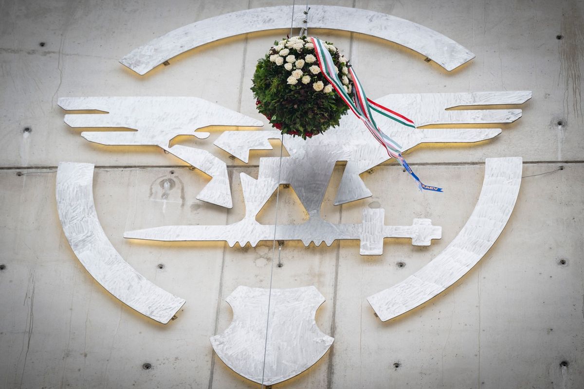 A tetőn elhelyezett bokréta jelképes üzenetet hordoz: épül a jövő – a Magyar Honvédség és Magyarország biztonságának jövője.