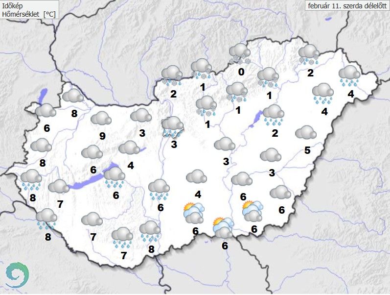 Pest, Heves, Borsod-Abaúj-Zemplén, valamint Nógrád vármegyékre elsőfokú (sárga) riasztás van érvényben gyenge ónos eső miatt. Az északkeleti határvidéken, hozzávetőlegesen a déli órákig akár két centiméternyi olvadozó átmeneti hóréteg is összejöhet