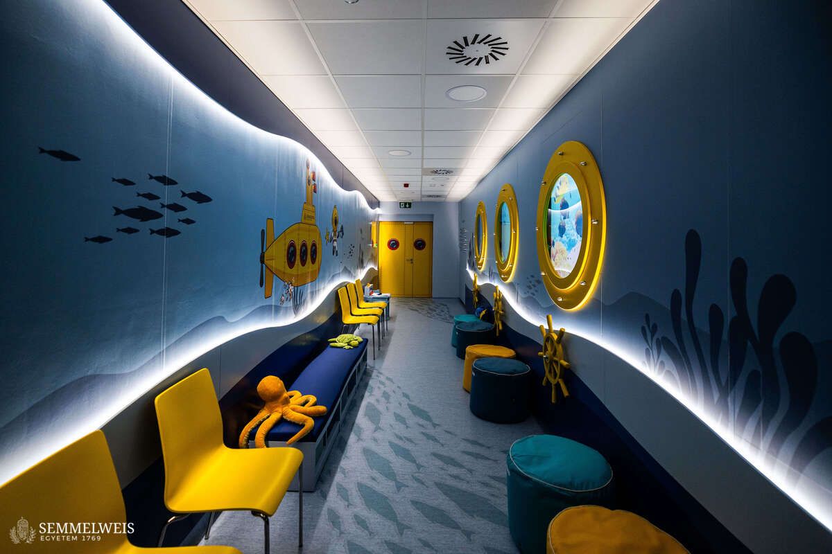 A Gyermekgyógyászati Klinika kis pácienseit tengeralattjáró tematikájú váró és MR-vizsgáló fogadja mostantól a Semmelweis Egyetemen. A fejlesztés révén a gyerekeknek olyan barátságos és támogató környezetet tudnak biztosítani, amely a legmodernebb feltételeket teremti meg a gyógyulásukhoz, és segíti leküzdeni a vizsgálattól való félelmet is. A beruházás egyetemi forrásbevonás mellett, társadalmi összefogásban valósult meg.