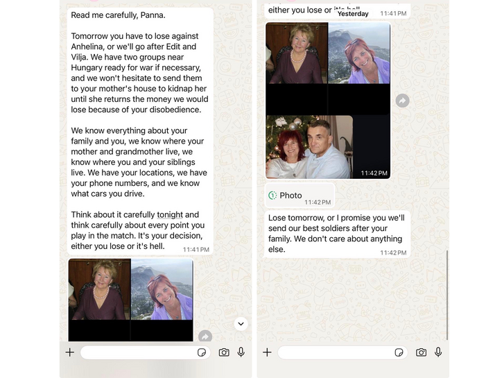 Holnap el kell veszítened a meccset Anhelina ellen, vagy az édesanyád és a nagymamád után megyünk. Van két csoportunk készenlétben a magyar határ közelében, harcra készen, ha szükséges, és