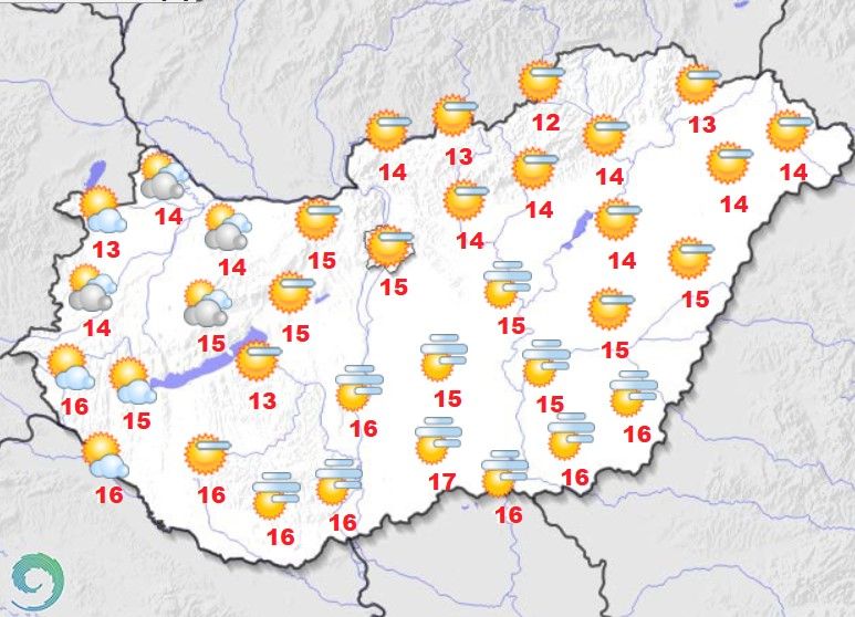 A hőmérséklet 15-16 fokig emelkedik.