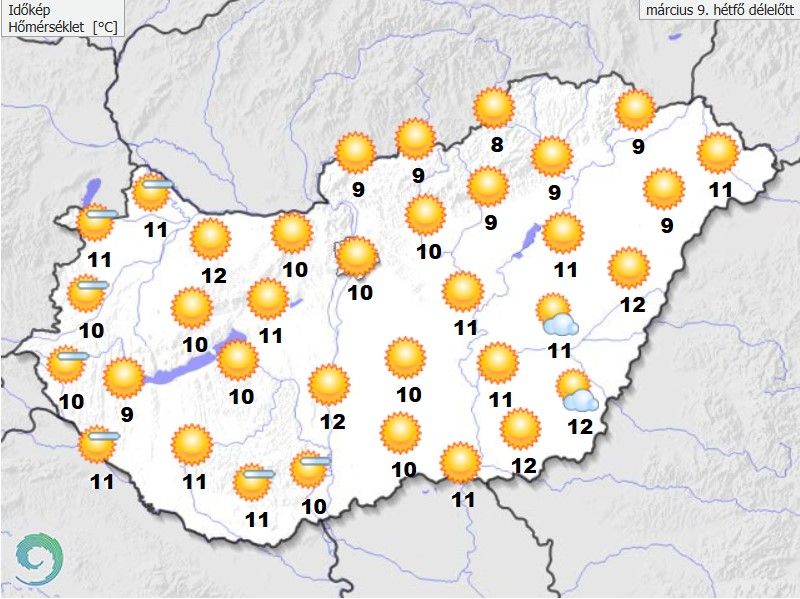 A hőmérséklet délutánra megközelíti a 17 fokot, így továbbra is kellemesen tavaszias idő várható.