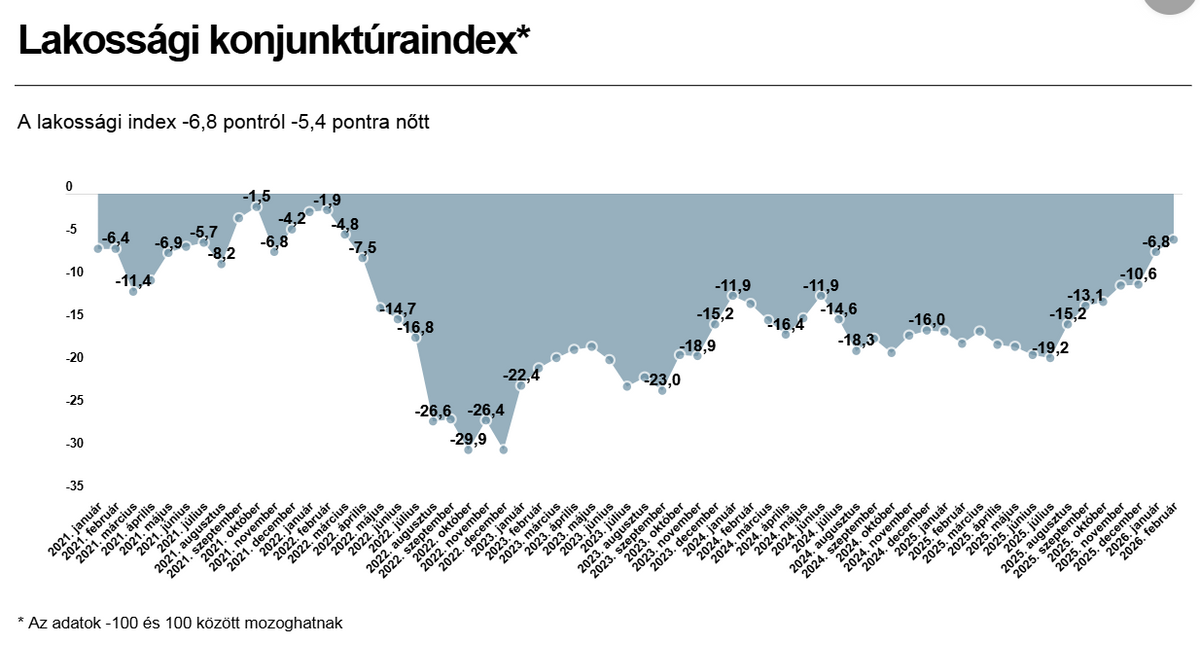 A Telex megjegyzi, az intézkedések és a lakossági hangulat közti összefüggést, valamint az ok-okozatiságot tekinthetjük spekulációnak is, ugyanakkor az biztos, hogy – miként a fenti ábrán is látszik – a fogyasztói bizalmi index tavaly július óta 12 pontot emelkedett, és februárra kétéves csúcsra jutott.