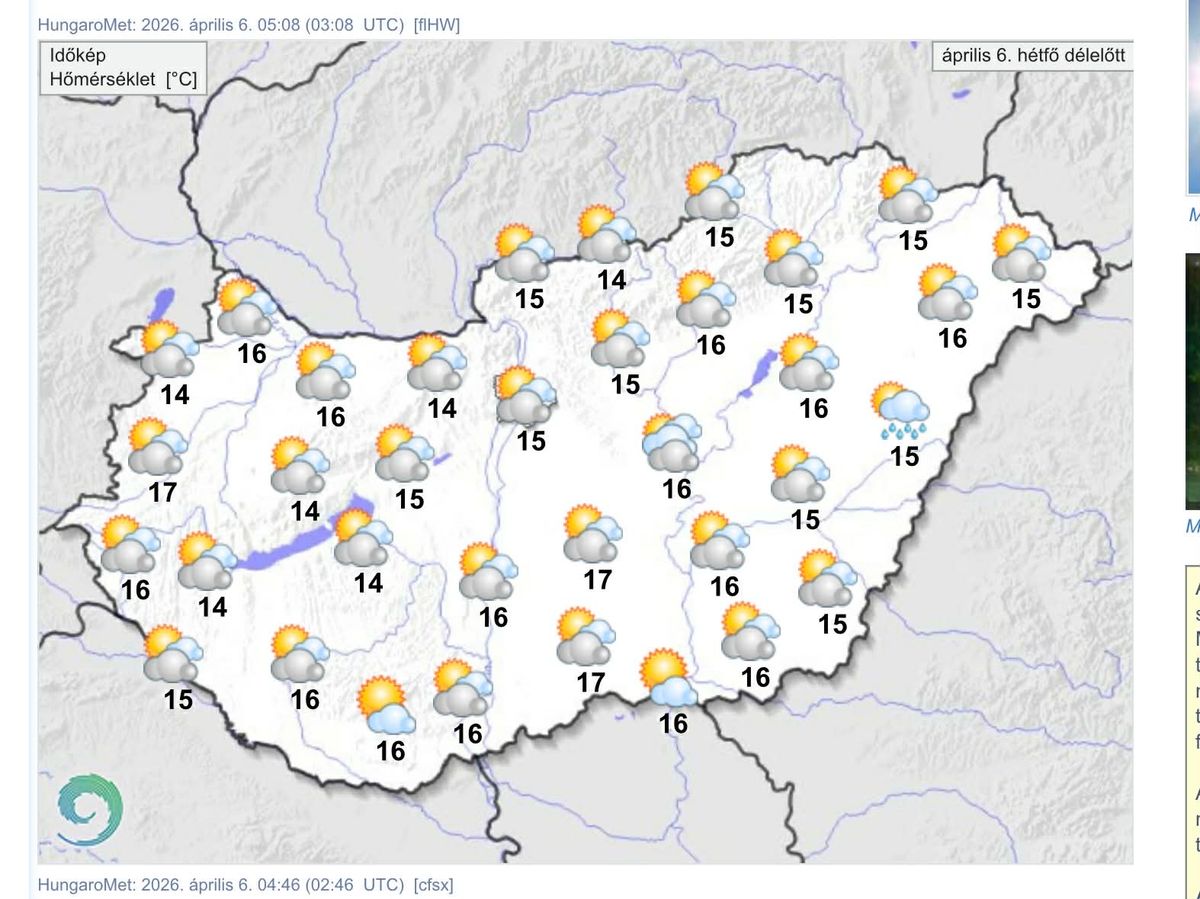 Húsvét hétfőjén csökken a felhőzet, így a fátyol- és gomolyfelhők mellett többnyire sok napsütésre lehet számítani. Délelőtt északon, északkeleten még kialakulhat zápor, ezt követően már legfeljebb csak nyugaton, délnyugaton lehet kevés helyen jelentéktelen csepergés, gyenge eső.