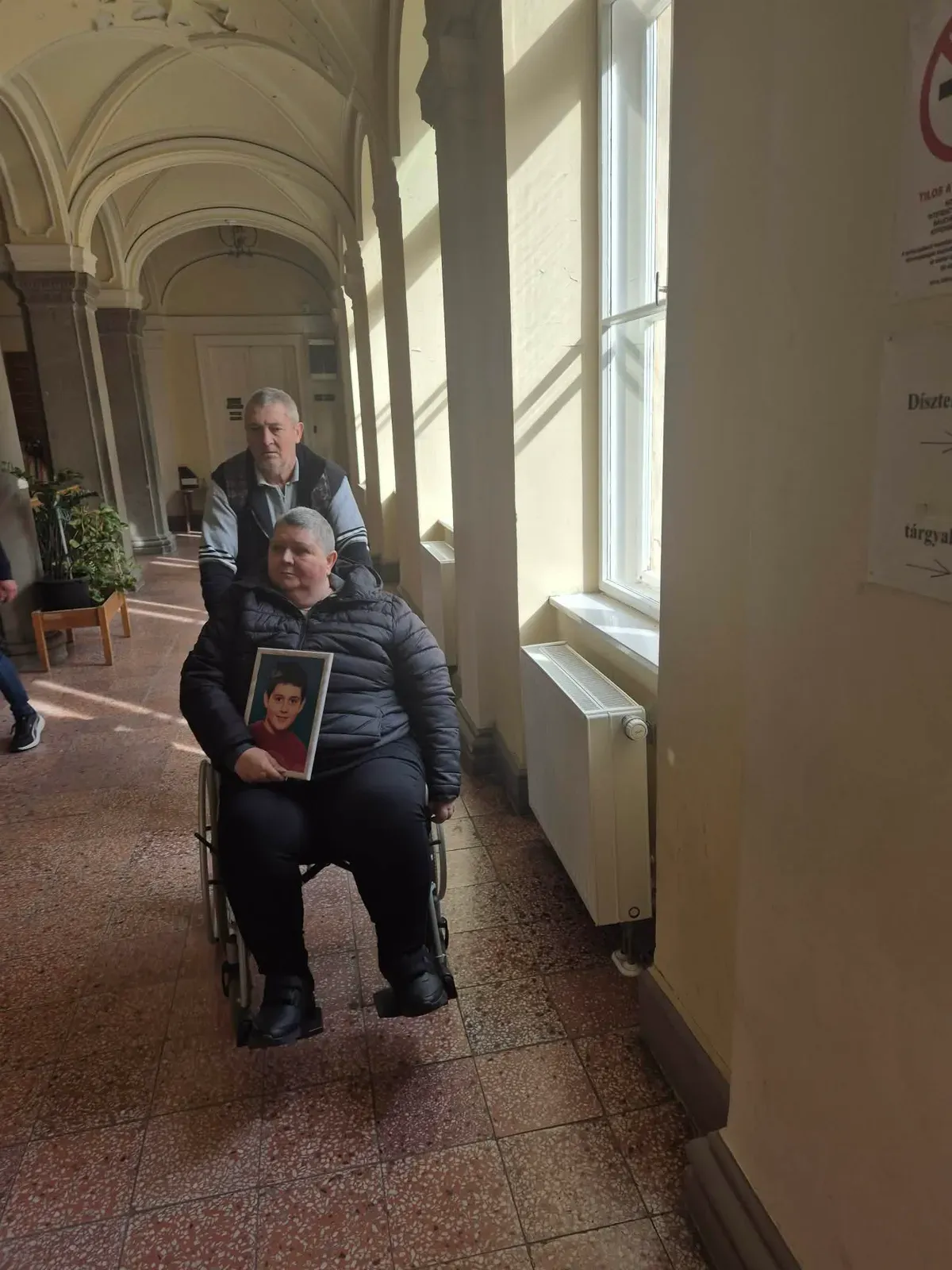 Till Mátyás maga előtt tolta a kerekesszékes feleségét, Katalint, aki a meggyilkolt fia képét tartotta a kezében. A portálnak a nő azt mondta, nem tudja, hogy a feltételezett gyilkosnak felmutatja-e a teremben. Annyit mondott F. Jánosról: