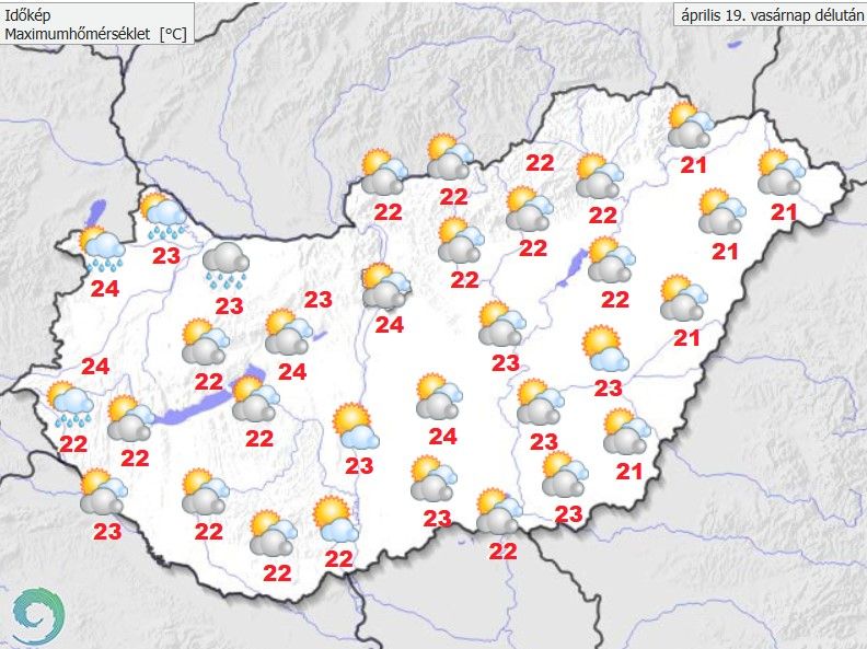 késő délutánra a Dunántúl északnyugati részén már több fokkal visszaesik a hőmérséklet. Késő este 11, 17 fokot mérhetünk.