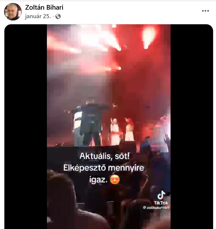 A videó nem más, mint Majka 2025. nyári, debreceni Campus Fesztiválon előadott botrányos produkciójának egyik részlete. A Csurran, cseppen című dal végén a miniszterelnököt megszemélyesítő rapper egy „Isten áldja Bindzsisztánt, b…szdmeg!” felkiáltással búcsúzott a közönségtől, majd egy közreműködő fordítva tartott mikrofonnal fejbe lőtte. Majka a jelenetet közben összeesett. Bihari ezt a részt találta megosztásra érdemesnek – ráadásul a Tisza Párt hivatalos jelöltjeként.