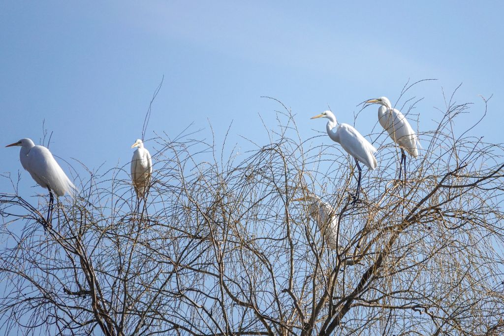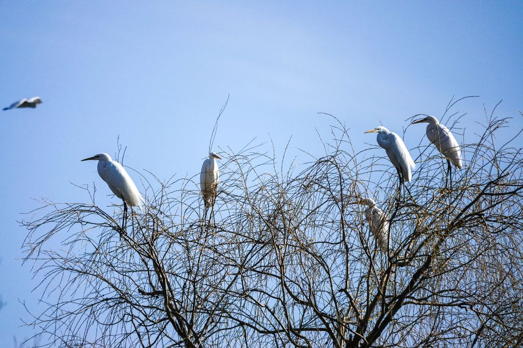 A sorozat egyik különlegessége, hogy nemcsak röptük közben, hanem nyugalmi állapotban is megfigyelhetjük a kócsagokat. Az ártéri fák csupasz ágai között ülve, a vízparton táplálék után kutatva vagy épp a levegőben sikolva mind más arcukat mutatják. A természetfotózás igazi ereje ezekben a pillanatokban rejlik: a mozdulat és a csend találkozásában.