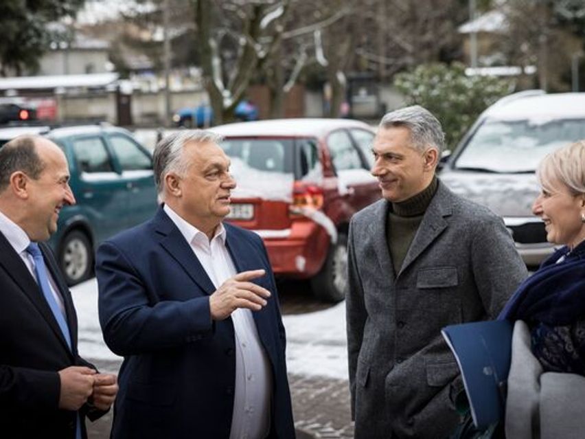 Hatalmas tömeg várja mindenütt a magyar miniszterelnököt.