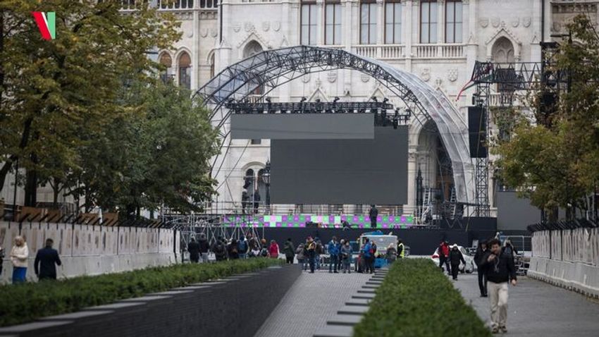 Az utolsó simításokat végzik a Kossuth téri színpadon, és már a kormányfő is dolgozik az ünnepi beszédén.