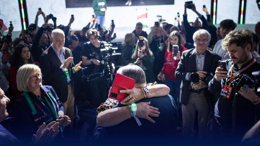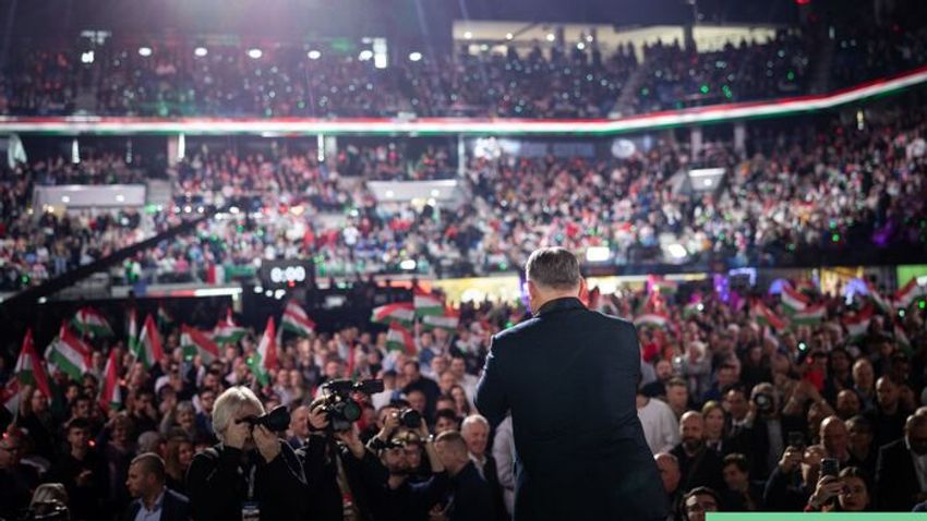 Minden pálya hazai pálya: Orbán Viktor és Lázár János együtt válaszolt a kérdésekre a szegedi háborúellenes gyűlésen a dugig megtelt a Pick Arénában.
