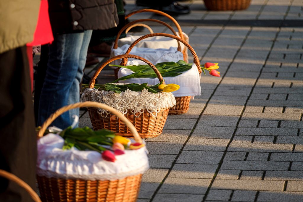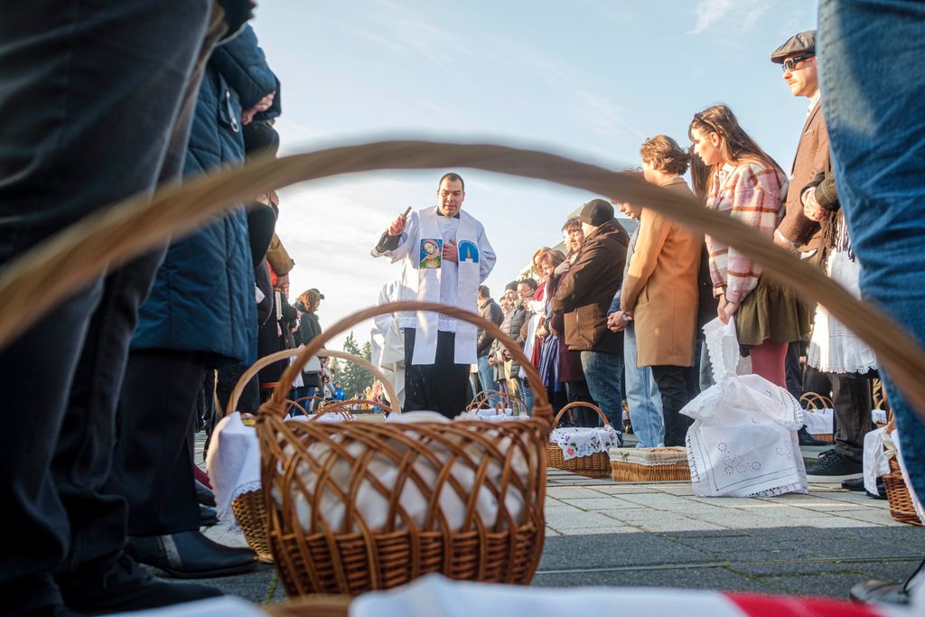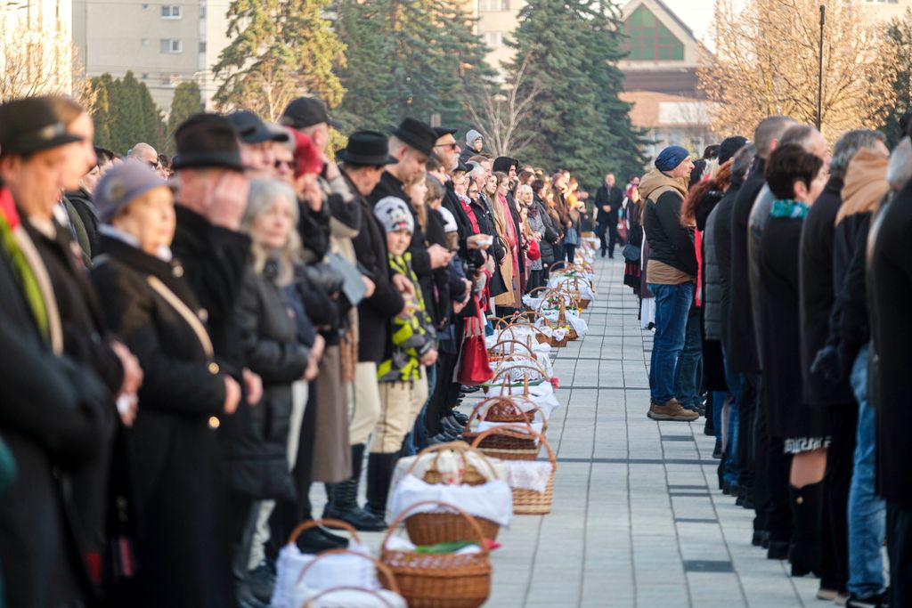A húsvéti sonkára, kalácsra, tojásra és a borra kértek áldást Csíkszereda főterén