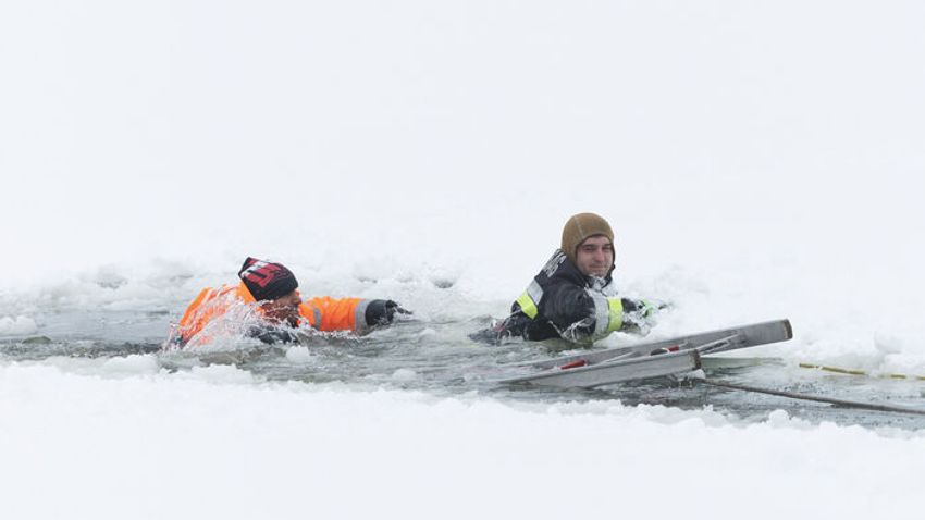 Mi történik, ha hirtelen beszakad alattunk a jég? Látványos fotókon a mentés folyamata