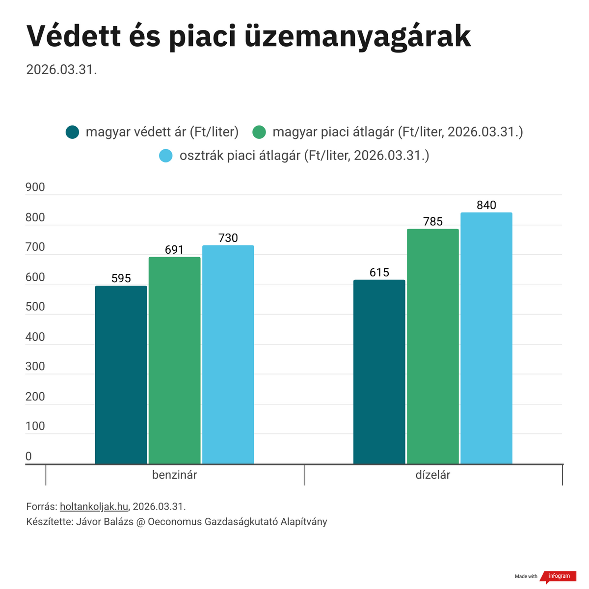 Március végére a benzin ára a védett árnak köszönhetően az egész régiót tekintve Magyarországon volt legalacsonyabb, míg Romániában átlagosan 710, Ausztriában 730 forintnak megfelelő lejt, illetve eurót kellett fizetni egy literért.