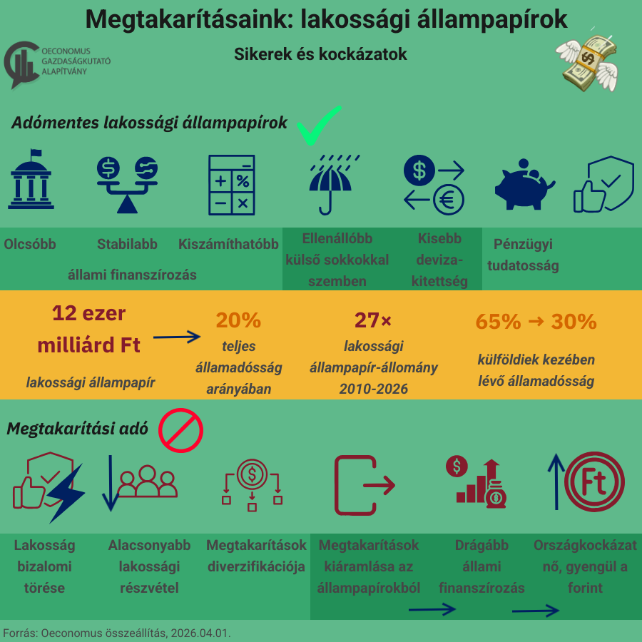 Ez a hírek szerint megszüntetné az állampapírok egyik legfőbb vonzerejét, az adómentességet, ami a konstrukció sikerének egyik kulcsa volt. Ennek hatására a lakossági megtakarítások egy része elvándorolhatna az állampapírokból, akár több ezer milliárd forint értékben is. Ez az államot arra kényszerítené, hogy drágábban, magasabb kamatok mellett vagy nagyobb arányban külföldi forrásból finanszírozza magát, ami növeli a sérülékenységet és a devizakitettséget. Emellett a kiszámíthatóságba vetett bizalom is sérülhetne a lakosságnál, ami hosszabb távon visszavetheti a lakosság pénzügyi részvételét.