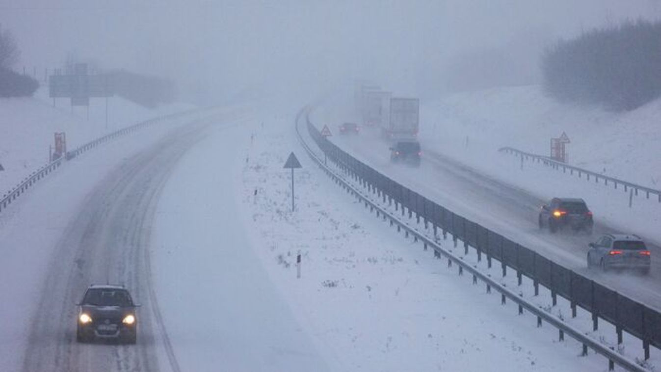 Rendőrök terelik le a forgalmat az autópályáról.