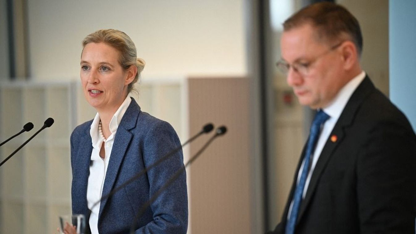 Borítókép: Alice Weidel és Tino Chrupalla, az AfD szövetségi elnöke és parlamenti frakcióvezetője (Fotó: dpa Picture-Alliance/AFP/Niklas Graeber)