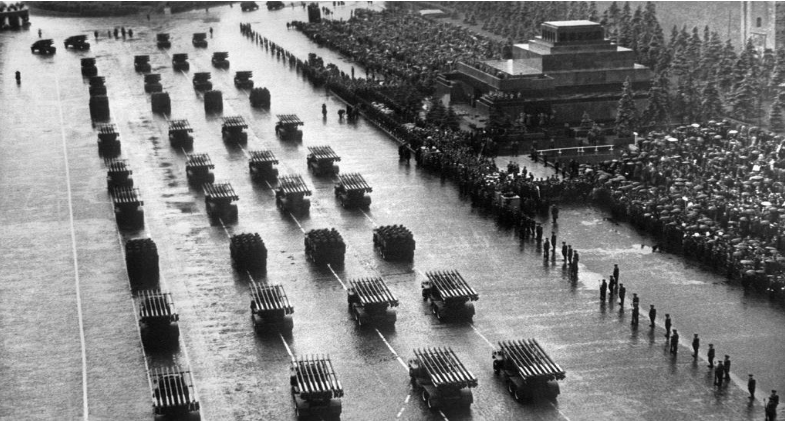 A Szovjetunió idején a napot grandiózus katonai parádékkal ünnepelték, különösen Moszkvában, ahol a Vörös téren felvonuló haditechnika és katonai egységek a kommunista rendszer erejét demonstrálták. A vezetés számára ez az alkalom egyszerre szolgált emlékezésként és politikai üzenetként: a győzelem narratíváján keresztül erősítették a hatalom legitimitását.