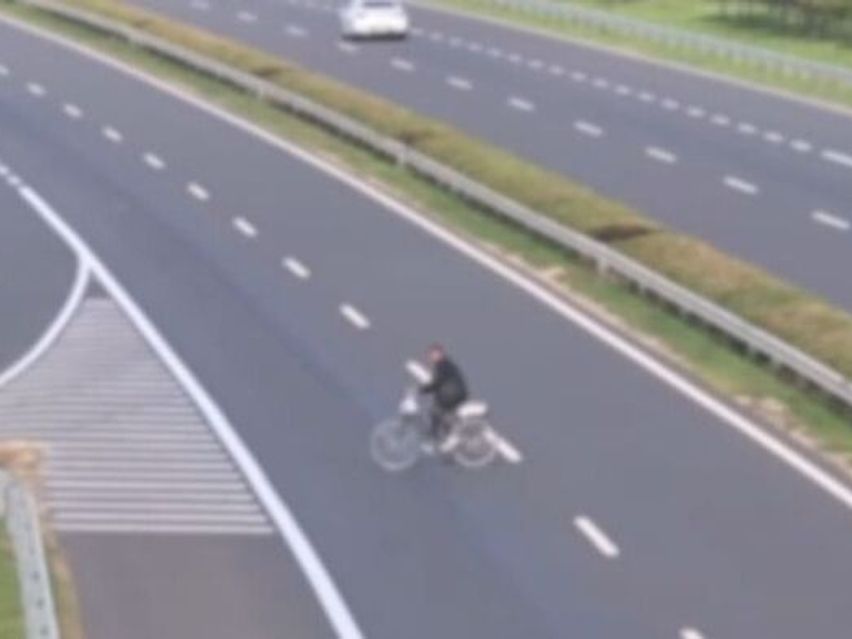 Kerékpárral kelt át valaki a szalagkorláttal elválasztott M30-as autóúton + videó
