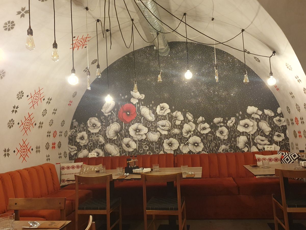 A Lenau utca és a Losonczy tér sarkán, a Szerb Ortodox Püspökség impozáns, gyönyörűen felújított épületének alagsorában található hangulatos pinceétterem nyáron csodás kilátást biztosító teraszt is működtet. A dekorációban hangsúlyos elem a kakas és a virág, hogy miért, azt megtudhatjuk a honlapról: „A kakas hirdeti az új nappali világ érkezését; élő óra, amely természetes jelzést ad a cselekvésre. A mitológiában a nap és a hajnal istenének állatalakú megjelenéseként tartják számon. Szlovákiában és Bulgáriában a kakast a kenyér szellemének megtestesítőjeként is látják. A hagyományos balkáni virág a nap jelképe, amelyet gyakran ábrázoltak kakassal együtt, mint a védelem szimbólumával. Mi vagyunk azok, akikre a világ várt.” Kissé túlzó állítás, de imponáló az ambíció. Rokonszenves, hogy a csapat meghatározó tagjait fotókkal és nevekkel bemutatják a honlapon. Az asztalon olaj, ecet, só- és borsdaráló.