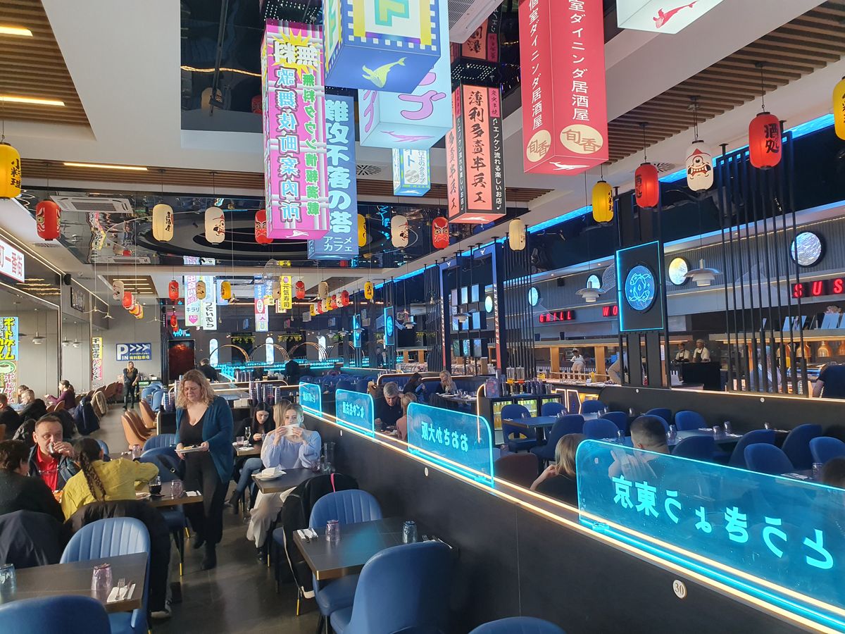 Ezt a modellt vitte tovább a néhány évvel később, 2000-ben nyitott első Trófea, mely mindmáig sikerrel működik, ezidőtájt négy helyszínen. Új színt hozott 2004-ben a műfajba a Wasabi-hálózat első egysége, ezek is sikerrel működnek, itt főként sushit és wok-ételeket ehetünk, melyek a vendég mellett futószalagon érkeznek és tetszés szerint levehetjük bármelyik kis tálkát. Érdemes a konyhához minél közelebb ülni.