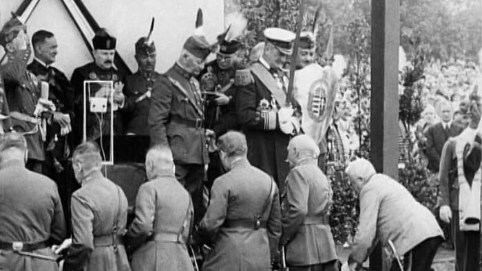 A vitézzé avatási ünnepségen Horthy Miklós kormányzó azt mondja: a véráztatta magyar föld szeretete olyan erő, amely egyedül alkalmas arra, hogy a hazafiatlan törekvéseknek gátat szabjon.
