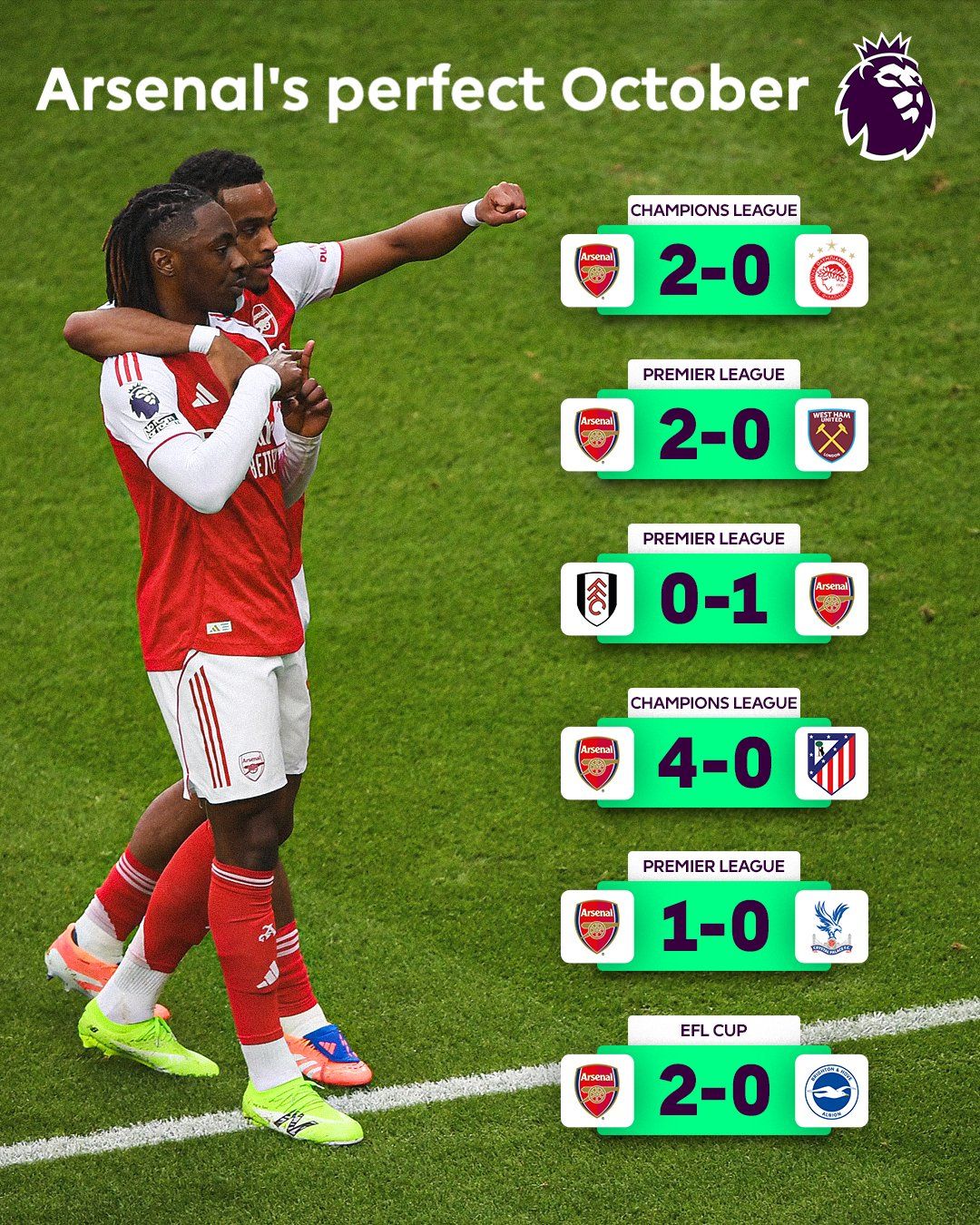 Amint arról már írtunk, tizennégy győztes tétmérkőzéssel kezdte az idényt a Bayern München labdarúgócsapata, ezzel megdöntötte az öt legerősebb európai bajnokság (angol, spanyol, német, olasz, francia) erre vonatkozó eddigi rekordját. A Bayern előtt a korábbi csúcsot az AC Milan tartotta 13 sikerrel az 1992–1993-as idényből. A Bayern München mellett az Arsenal is rekordot döntött azzal, hogy hat összecsapást is megnyert októberben kapott gól nélkül. A Premier League címvédője, a Liverpool is bekerült a most készített statisztikákba, de ennek nem örülhet Arne Slot együttese: szeptember 27. óta az európai topligák egyetlen más csapata sem veszített el annyit meccset, valamennyi sorozatot nézve, mint a Pool, amely hétből hatszor kikapott.