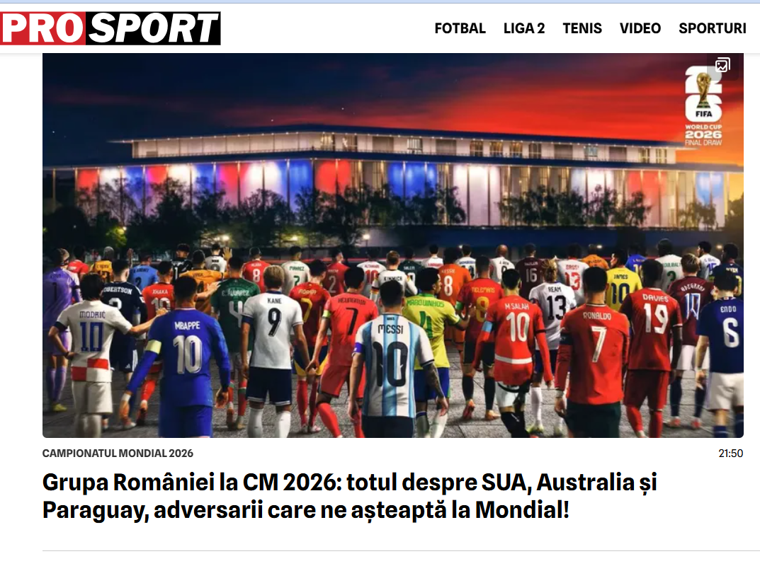 A Prosportnál Románia már ki is jutott a világbajnokságra. „Románia csoportja a 2026-os világbajnokságon: minden az USA-ról, Ausztráliáról és Paraguayról, a világbajnokságon ránk váró ellenfelekről!”.