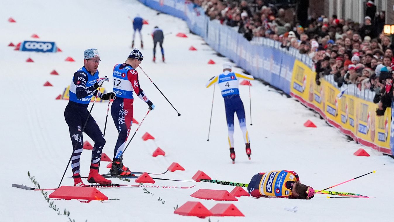 A legrosszabbul azonban egyértelműen Klaebo járt: csúnyán beverte a tarkóját, s míg a többiek hamar felpattantak, a norvég klasszis továbbra is a havon feküdt.